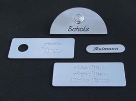 Türschilder, Klingelblenden, Haus-Nr. in verschiedensten Formen und Materialien, nicht zu vergessen, die klassischen Klingel- und Briefkasteneinlegeschilder.